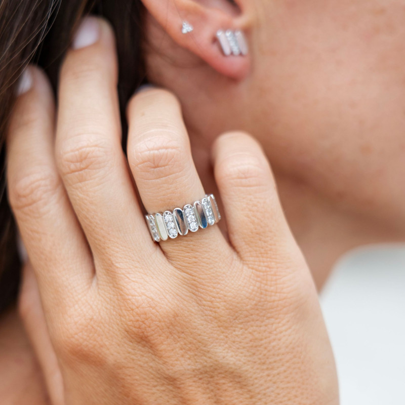 Deje que su personalidad se exprese con esta singular joya, una combinación de fuerza y luz. Un anillo concebido como un reflejo de su audacia.